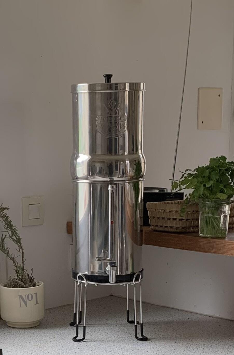 | Model | Neptune | Color | Silver | Material | AISI 304 stainless steel | Capacity | 11 Liters | Power Type | Non-Electric | Filtration flow (with 2 filters) | 3.8 Liters per hour | System height (without support) | 56 centimeters | System height (with support) | 72 centimeters | System diameter | 24 centimeters | Weight of the complete system | 4.8 Kg |