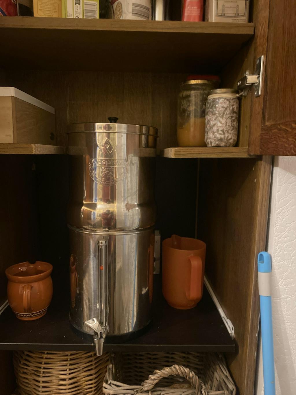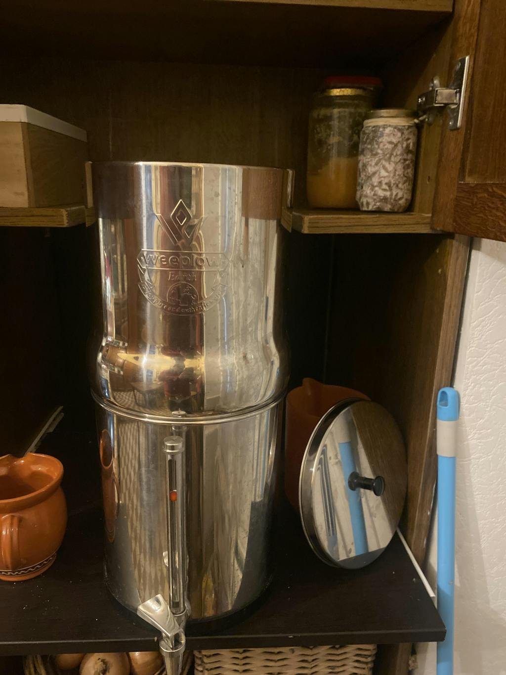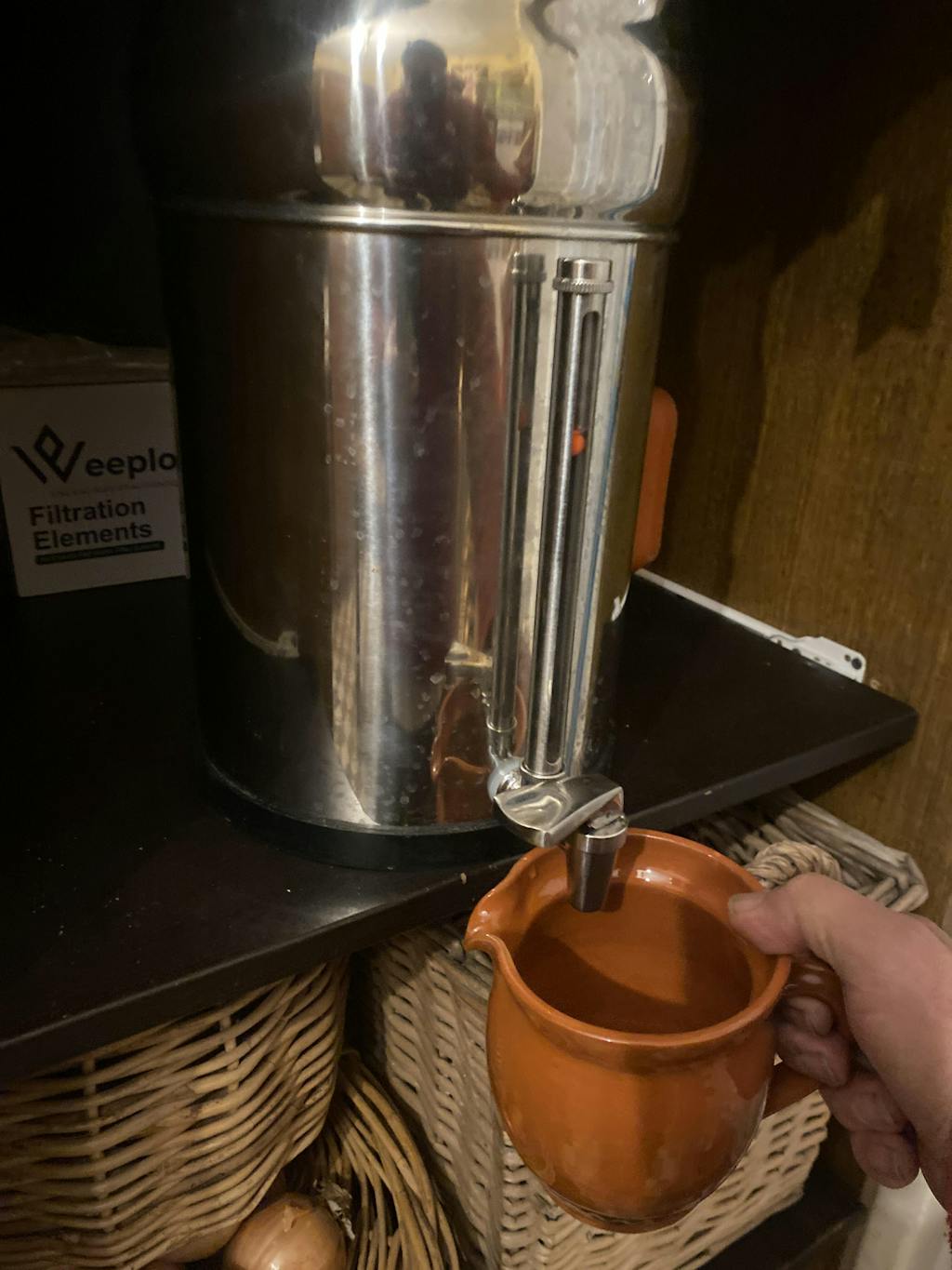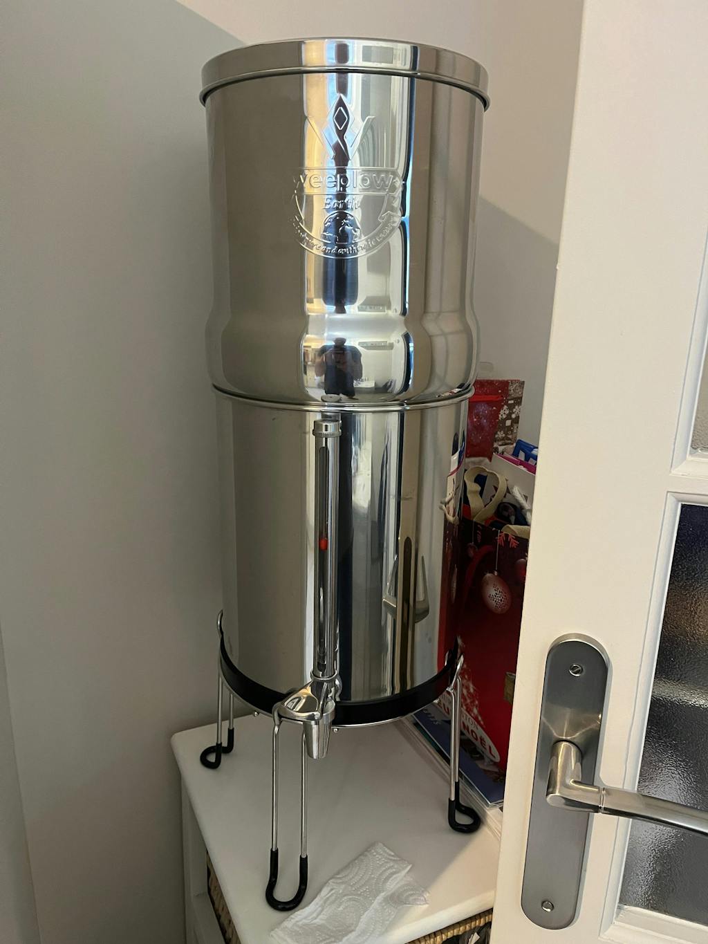 This gravity water filtration system is made from food-grade AISI 304 stainless steel. It is very effective for making any unreliable water source potable.